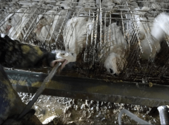 在野外生活的鴨子平時喜歡搜尋糧草、游泳,並養育後代,但在肥鵝肝養殖場上,他們被剝奪了生命中的一切。從出生到死亡,連腳蹼都沒沾過一滴水。